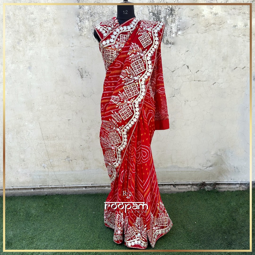 Authentic Bandhej pattern on pure georgette fabric